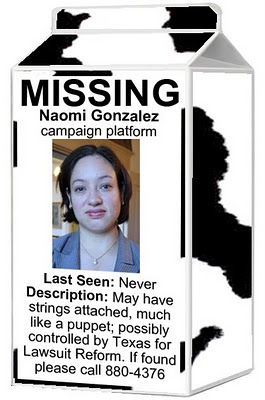 Aren't "firsts" always newsworthy items. Bernal was the "first" female County Attorney in El Paso County. Norma Chavez was the "first" Chicana member of the House Appropriations Committee. "First" homosexuals elected officials are reported as such, as in the case of the recently elected Mayor of Houston. So why doesn't the local media investigate and report on the fact that Naomi Gonzalez is a lesbian? If she wins, she will be the "first" lesbian State Representative from El Paso County, Texas.