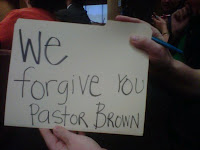 Draw your own conclusions about Pastor Brown's remarks. If you want to read the full profile you can find it here on My Space.