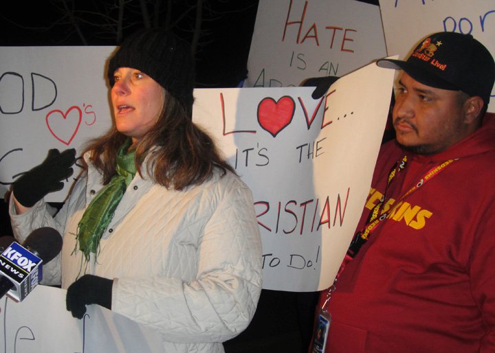 But getting back to what I said earlier about Pastor Brown's upbringing, I think its very insightful. While Lisa D was holding up her sign in City Hall today about Pastor Brown, an elderly woman who was sitting next to and chatting with his wife the entire time called Lisa a "hypocrite" when she saw the message on the sign.That's an interesting choice of words when you put several things in context. First, the group in opposition to domestic partner benefits refer to themselves as Traditional Family Values.