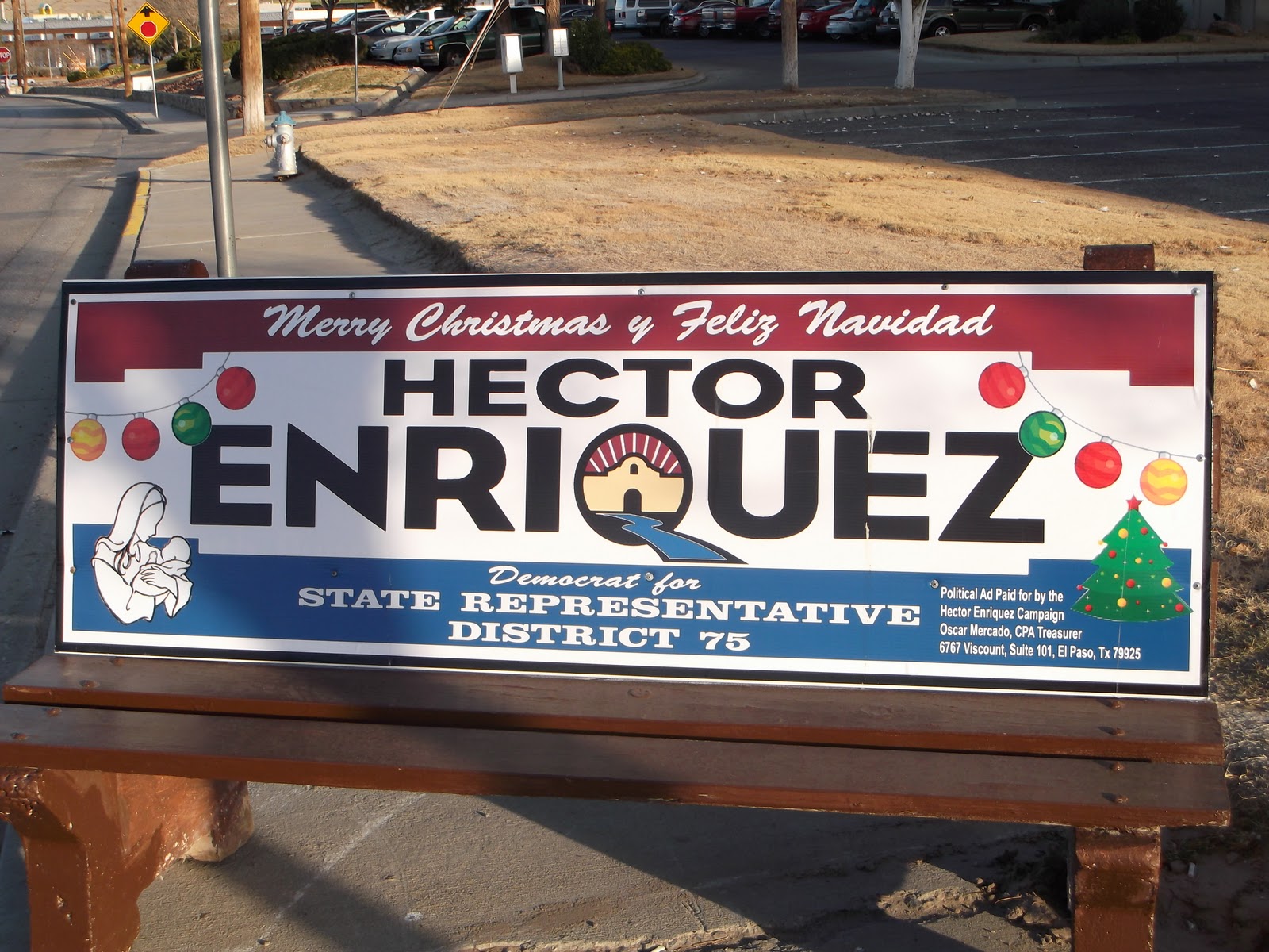 But if early spending is any indicator, it looks like Hector Enriquez has money to burn. He purchased a lot of ad space on bus stop benches in the district. Most of the one's I have seen have been at the edge of the district and in an industrial area. People don't live there, but they work in the area. There are probably one a few people that work in the area that are actually residents of HD 75, but every extra set of eyes that sees the signs is usually a good thing.