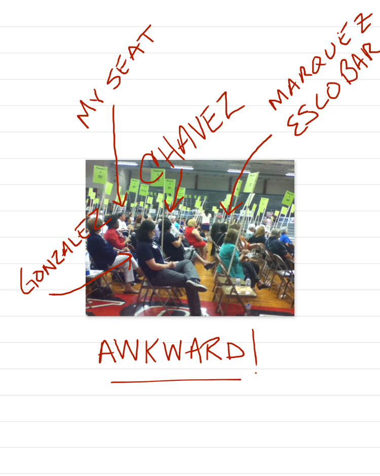 There was a funny situation with seating. Turns out I was sitting behind a former State Representative. And she was sitting behind two of her political rivals, State Rep Marisa Marquez and County Judge Veronica Escobar, and had to sit next to the current State Rep that ousted her, Naomi Gonzalez.
