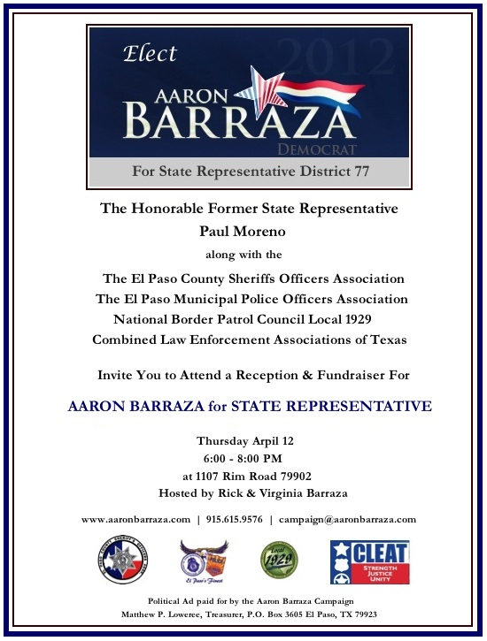Former Rep Paul Moreno Hosts Fundraiser for Barraza Get link Facebook X Pinterest Email Other Apps April 11, 2012 Get link Facebook X Pinterest Email Other Apps Comments