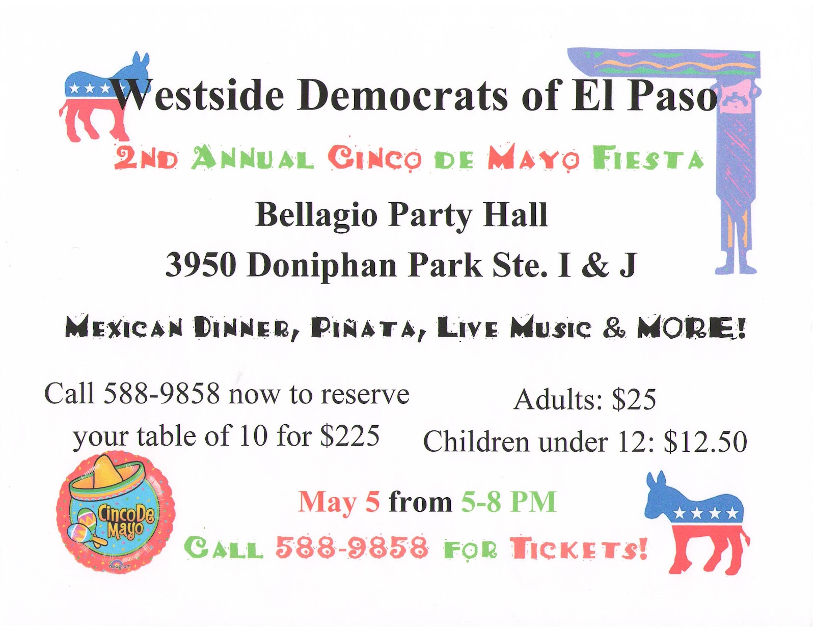 Westside Democrats to Hold 5 de Mayo Event Get link Facebook X Pinterest Email Other Apps April 25, 2012 Get link Facebook X Pinterest Email Other Apps Comments