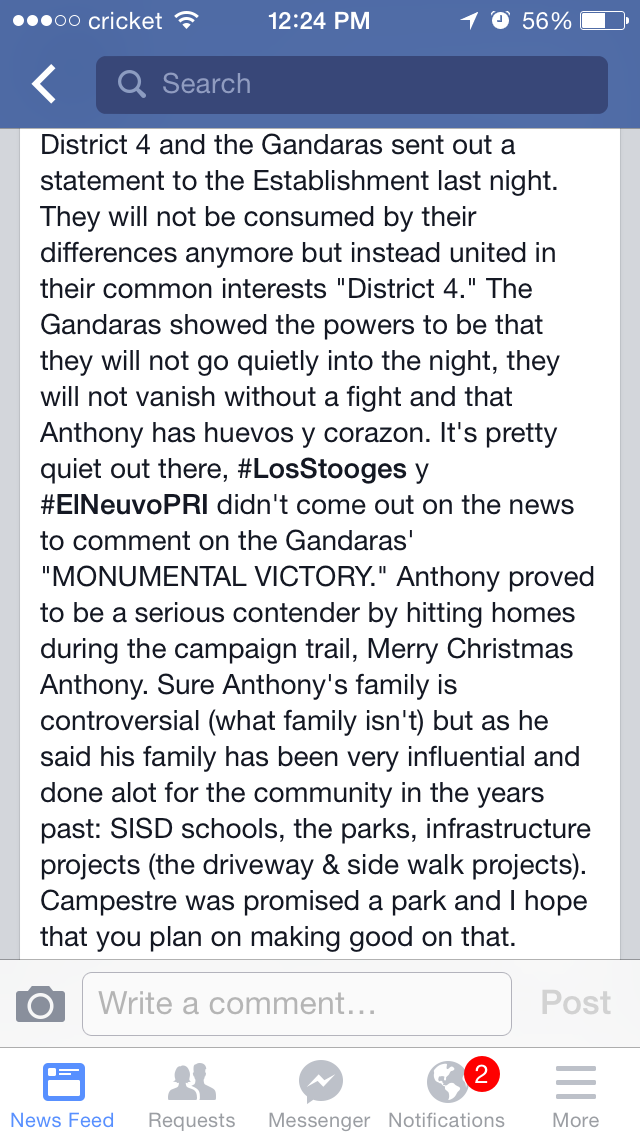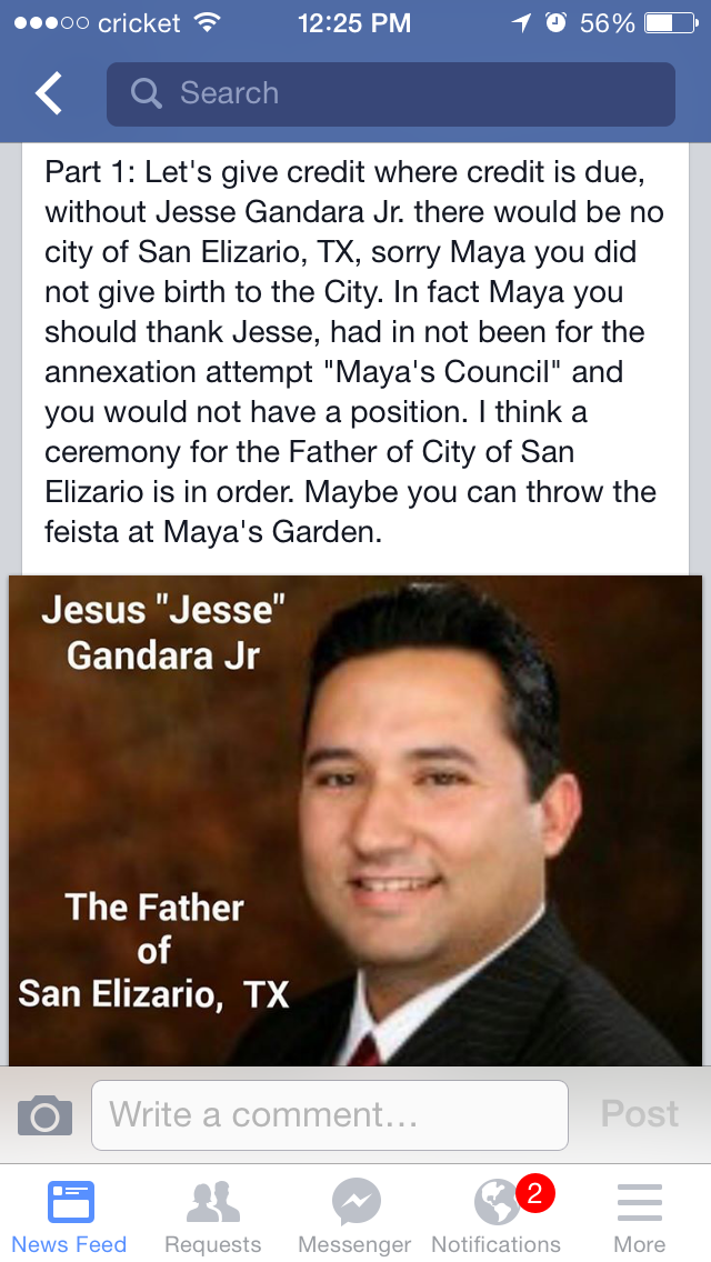 Only Jesse Gandara would actually take credit for that. The reality is this post is at least partially right. If Jesse and his council hadn't attempted to seize San Eli, then yes there would be no City of San Elizario now.