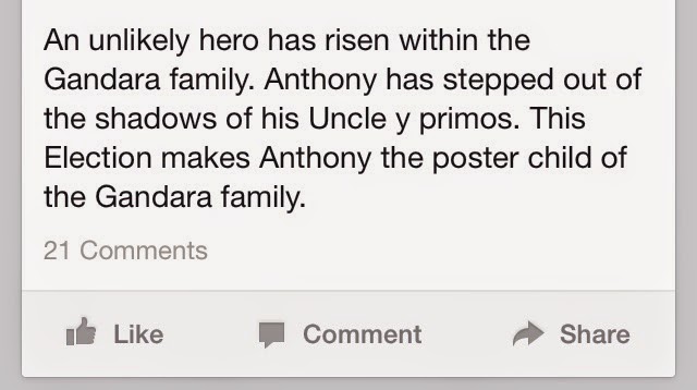 Perhaps the most reviled, at least from what I can tell, of the Gandaras is Jesse Gandara, Jr. He apparently has been keeping himself busy, according to many in Socorro, by running a little facebook page while he is awaiting trial on the corruption charges he's facing.