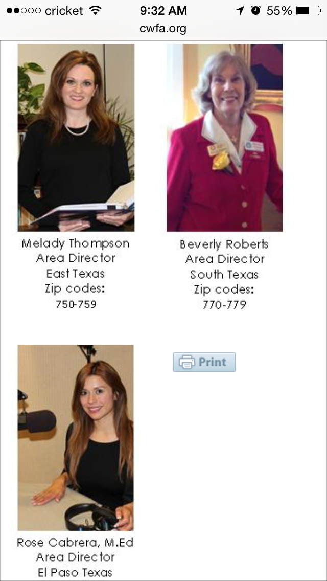 As you can see in the image she's actually pictured in what appears to be a studio for a radio program. Also pictured are the area directors for other parts of the state of Texas.