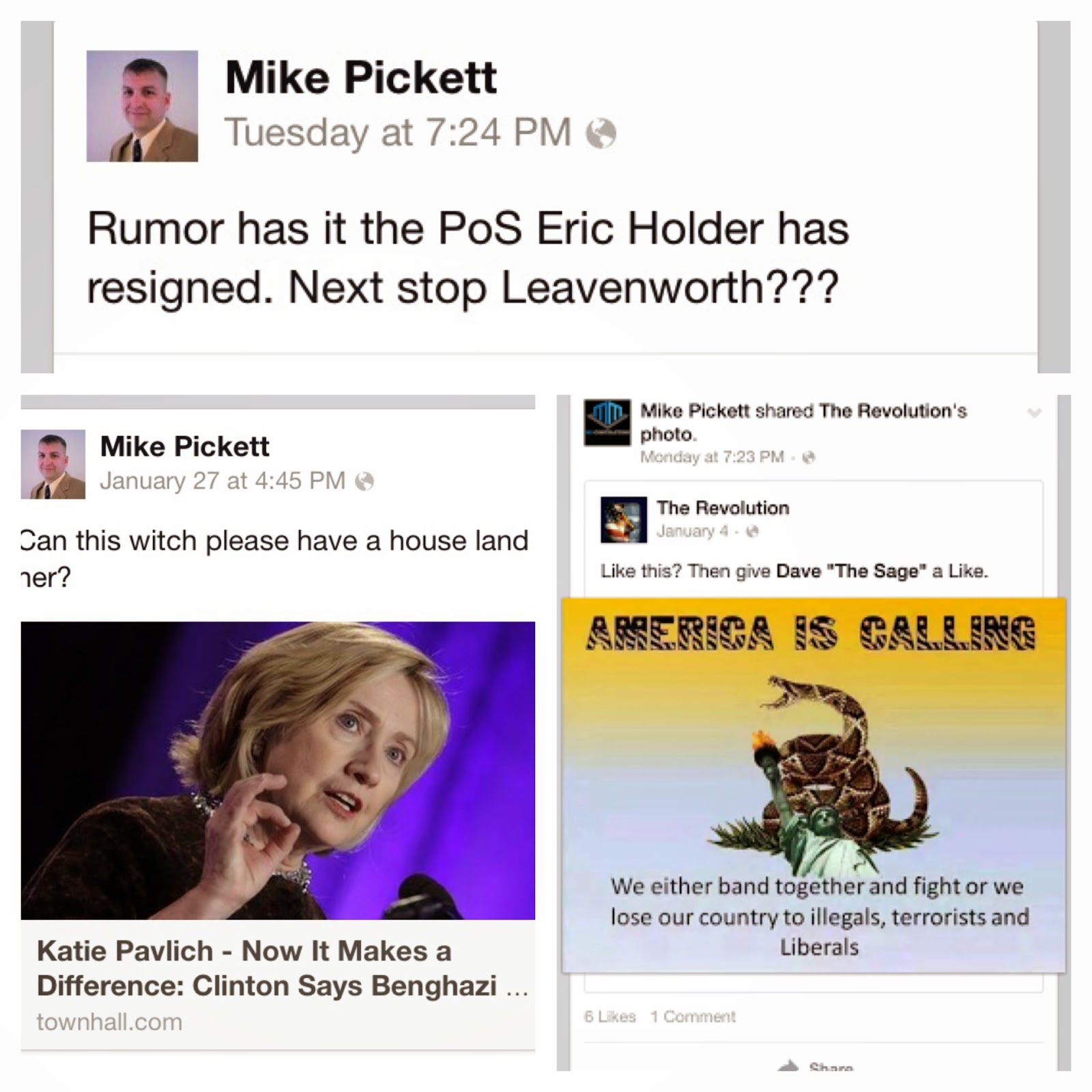 Or is it Mike Pickett's Extravaganza of Extremism? (Personally I can't decide between him calling the highest ranking law enforcement officer in the land a piece of shit and when he calls Hillary a witch and hopes a house lands on her. Hope he doesn't think that way about all female electeds.)