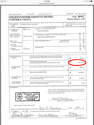 Al and Peter have reported their 8 day finance reports to the city and the headline is the fact that Peter pretty much had a 2-1 fundraising advantage over Al.