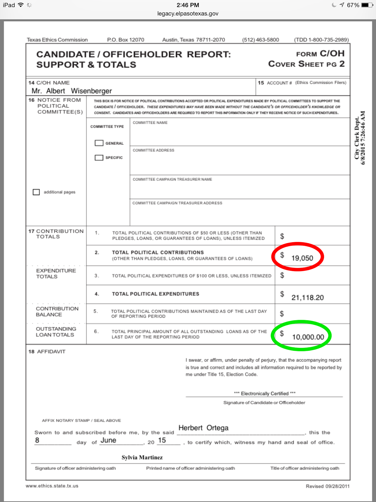 The total numbers won't show that - they will show Peter raised $22,414.65 and Al raised $21,118.20 - but $10,000, or roughly half, of Al's funds came in the form of a loan to himself.