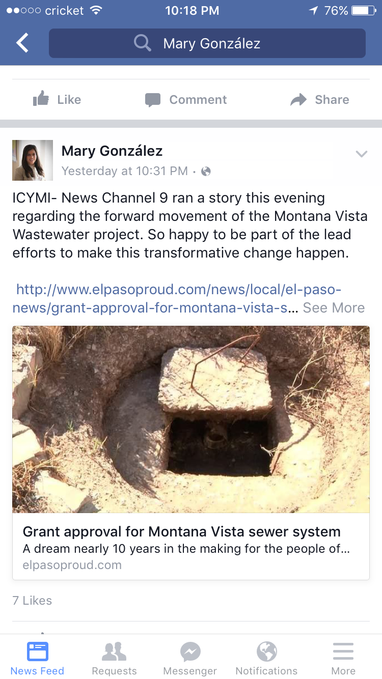 State Rep Mary Gonzalez is taking the credit for a project going through that she shouldn't be taking credit for. Well, not to the degree that she is. And it saddens me because its more of the same old type of politics that many of us thought we had turned the page on. Here's a screen shot from her FB page: