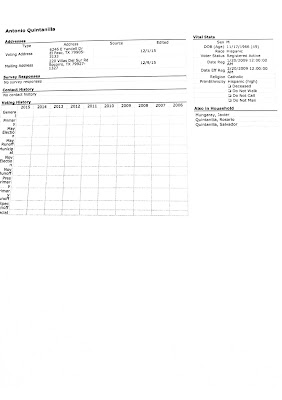 Here's a screen shot of his voting record in VAN. You see all those empty boxes? If he was a voter, those would be populated with codes indicated what primary he voted in and whether he voted early or on election day.