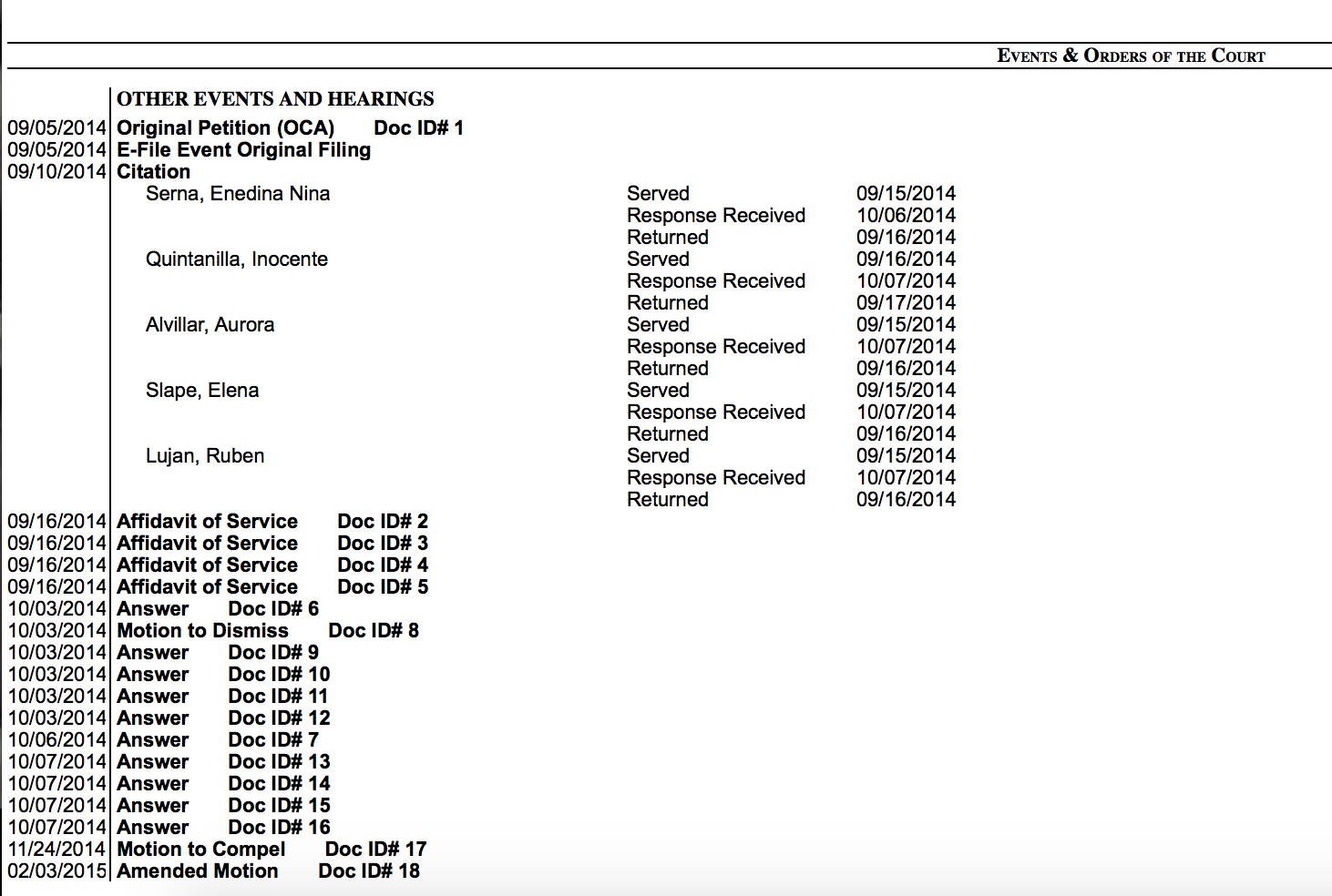 So to clarify, one civil law suit was thrown out, one is still pending but nothing of note has happened since February of last year, and there has been no allegation of wrong doing by a law enforcement agency against Chente Quintanilla, or Judges Serna and Lujan as of yet.