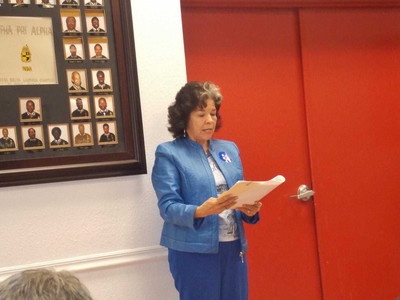 Here's a picture of Dr. Perez earlier tonight that I stole from Don Williams. This is her reading some hate mail from her close friend Othon Medina about Apodaca at the meeting tonight.