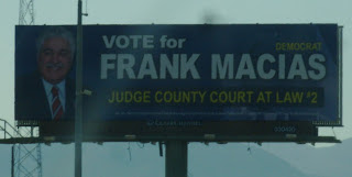 Now to bring the D'oh parade full circle, Frank Macias is the step father to Gregory Gonzalez, the guy who had a car parked at the courthouse with his campaign sign that had a expired inspection sticker.