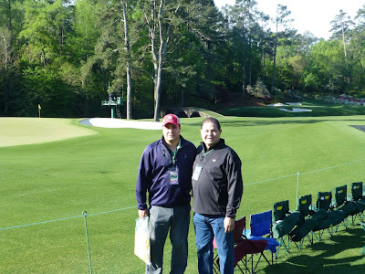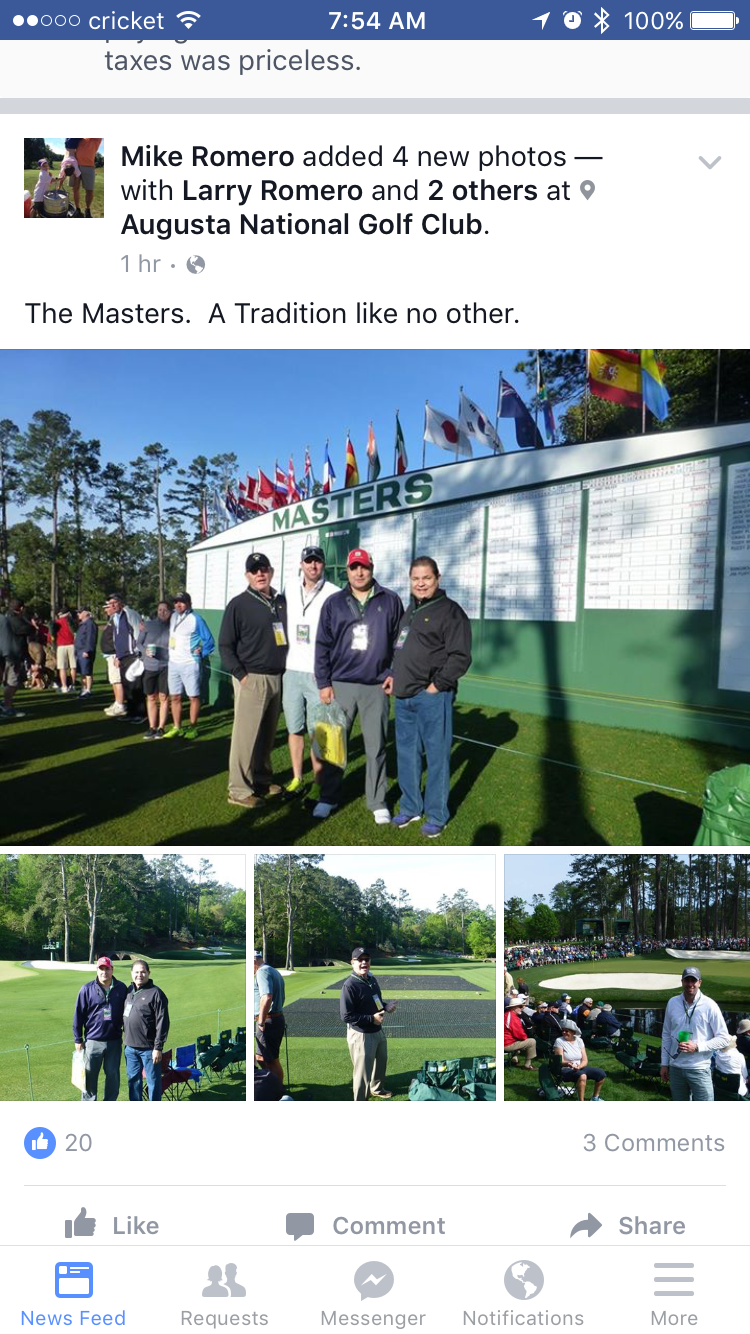 UPDATE: Romero's son has contacted me and indicates that the trip is for his 60th birthday, was a bucket-list type trip, and that he, not Larry, paid for the whole trip. He also indicates that Larry is having a difficult time walking the course and that he also paid for Larry's brother to attend as well to help him while traveling.