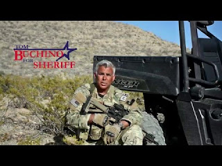 Operational conversations are important for this community to have. One of the interesting things that has com forward during the campaign out of the Buchino campaign has been a palpable desire to further militarize the sheriff's office. Guess what, that costs money. And Buchino can't really shake off the notion that he wants to militarize the office when he actually advertises his campaign with a military posture. Like this:
