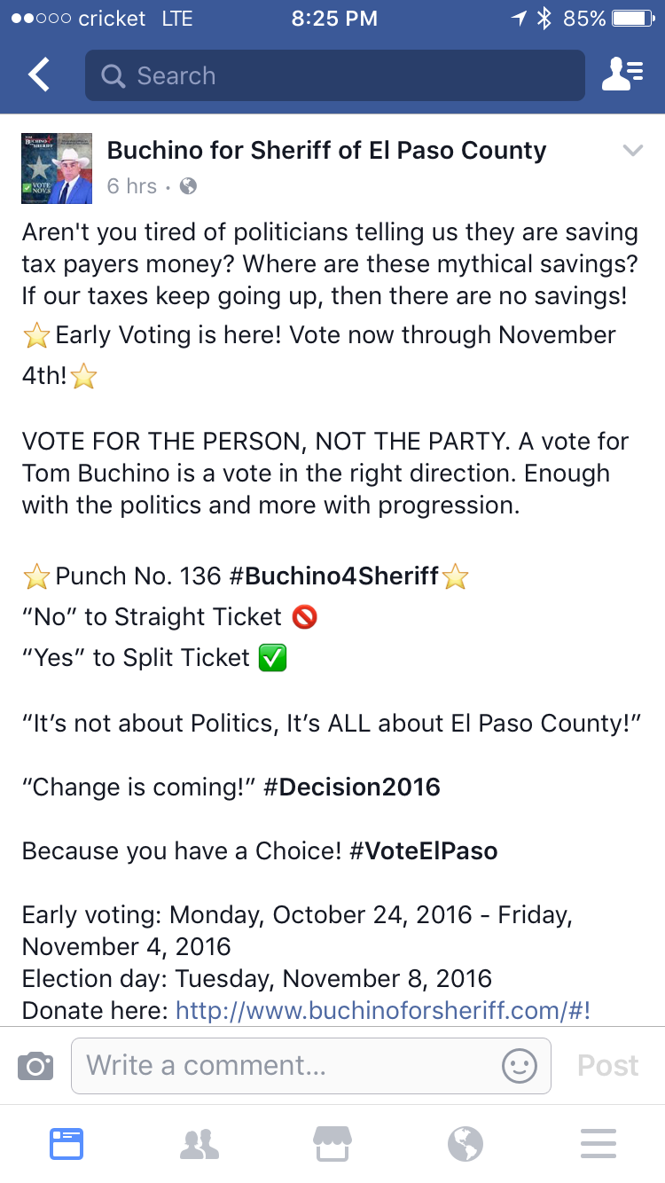 The boys from the Sheriff's Officer's Association love to tag me on Facebook with updates from the Buchino campaign.