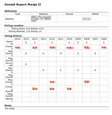 I checked all the voting records of the announced or rumored mayoral candidates for the upcoming municipal election. Basically there was only one surprise - David Saucedo. I wasn't surprised that Dee Margo's voting record is solidly Republican, and I wasn't surprised that Saucedo had voted as a Republican before as well.