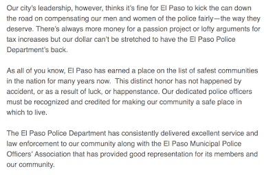 The latest newsletter is focused on police as "square one in quality of life" in a pretty obvious attempt at securing the endorsement of the police union.