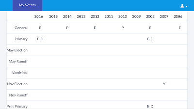 In fact, its really smart when you consider the fact that Burgess has never voted in a city election according to records prior to his current effort to run for office. Here's a look at his voting record and as you can see, he votes in general elections pretty regularly but doesn't appear to have voted in any municipal elections in El Paso so far. Actually now that I think about it, doesn't look like he's voted in any school board elections either, except for the school board election and the quality of life bond elections that were held in November.