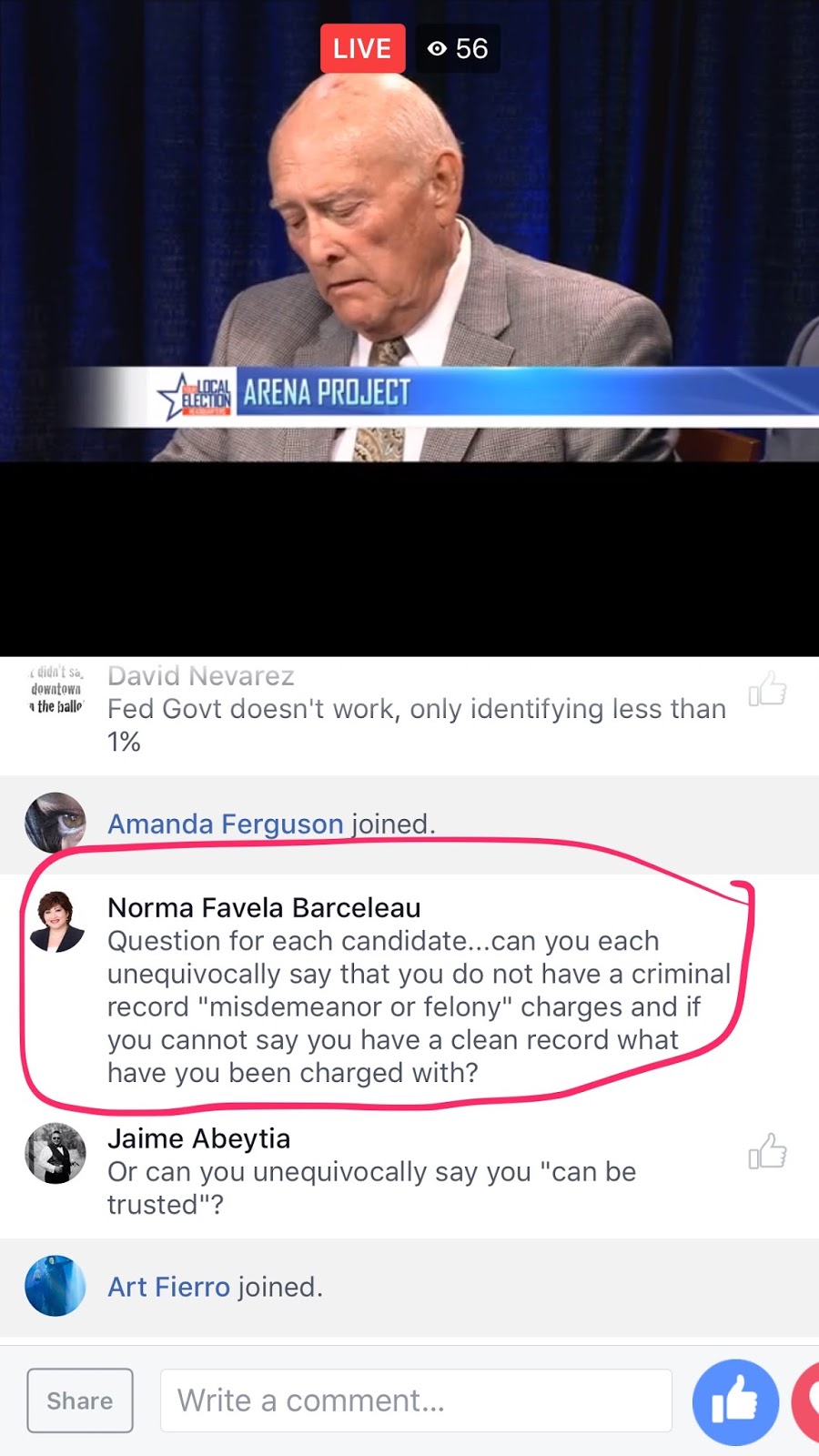 But the most gangsta of all was last night during the D3 debate on Newschannel 9. Norma Favela, spouse of Jaime Barceleau chimed in to attack her husband's opponent during the live stream. That was a really big risk because she pretty much pulled a Chris Hernandez and asked a question knowing full well everyone knows she's the spouse of a candidate.