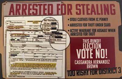 First, you have to understand that the details of the piece are true and public record. District Clerk Norma Favela has been wanting to use it for some time. Obviously as District Clerk she's uniquely positioned to have access to those records, and I'm not saying she has, but if she has (which should be an easy enough open records search) is up to you all as constituents if you think that is an appropriate use of her position to access those records.