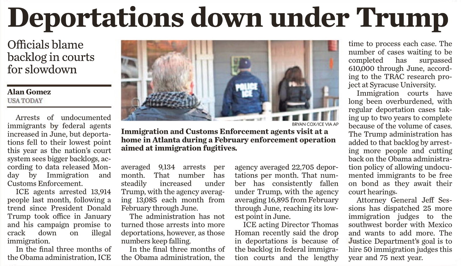 Because of this article in USA Today yesterday that also ran in the El Paso Times, which is where I saw it. The article basically says that there are less deportations happening under the Trump administration because there are more apprehensions and there is now a bottle neck.