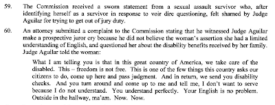 When you combine it with another incident highlighted in another part of the report about an attorney that was scheduled to have a c-section because of complications due to pregnancy around the time Judge Aguilar was trying to hold her in contempt of court, and it paints a very bad picture. A picture that not only reflects on Aguilar, but on the judiciary as a whole.