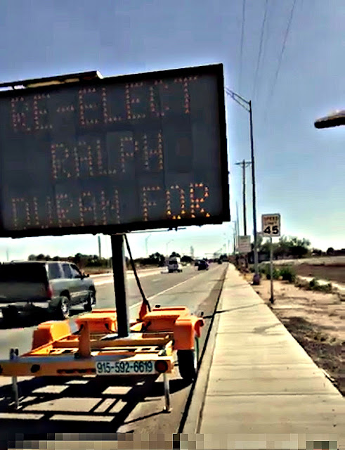 This has happened several times now and Socorro City Rep Ralph Duran continues to engage in the same activity, which can only mean he doesn't care what the law says. Duran, who is facing an election in just a few short days, appears to not care about complying with the state election code by using a traffic control device for a non-traffic related purpose on a state highway. Let me underscore that last point...ON A STATE HIGHWAY. Not next to one. Not in the right-of-way. ON THE ACTUAL ROAD.