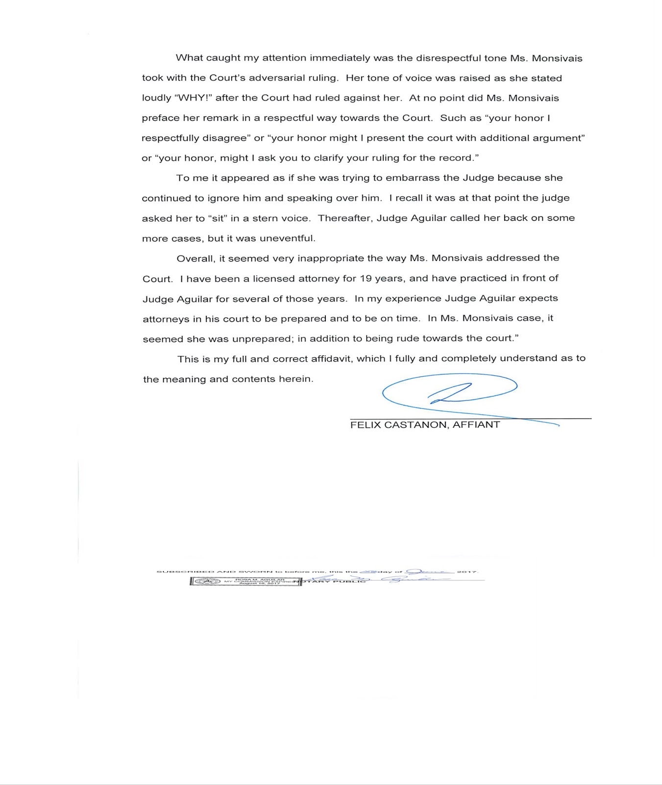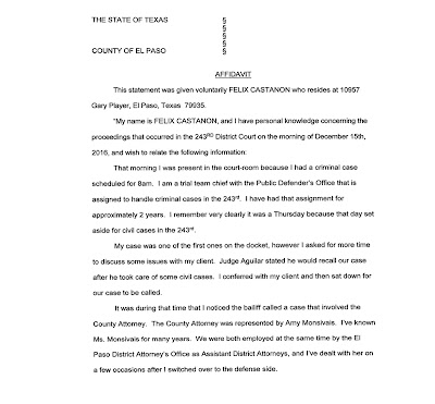 Here is the affidavit from Castañon about his account of what transpired that day with Judge Aguilar.