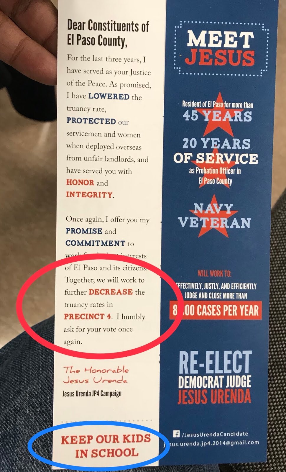 But more to the point, every time you see a Justice of the Peace candidate talking about how they cut truancy or they are going to keep kids in school, they are lying or ignorant to the law.