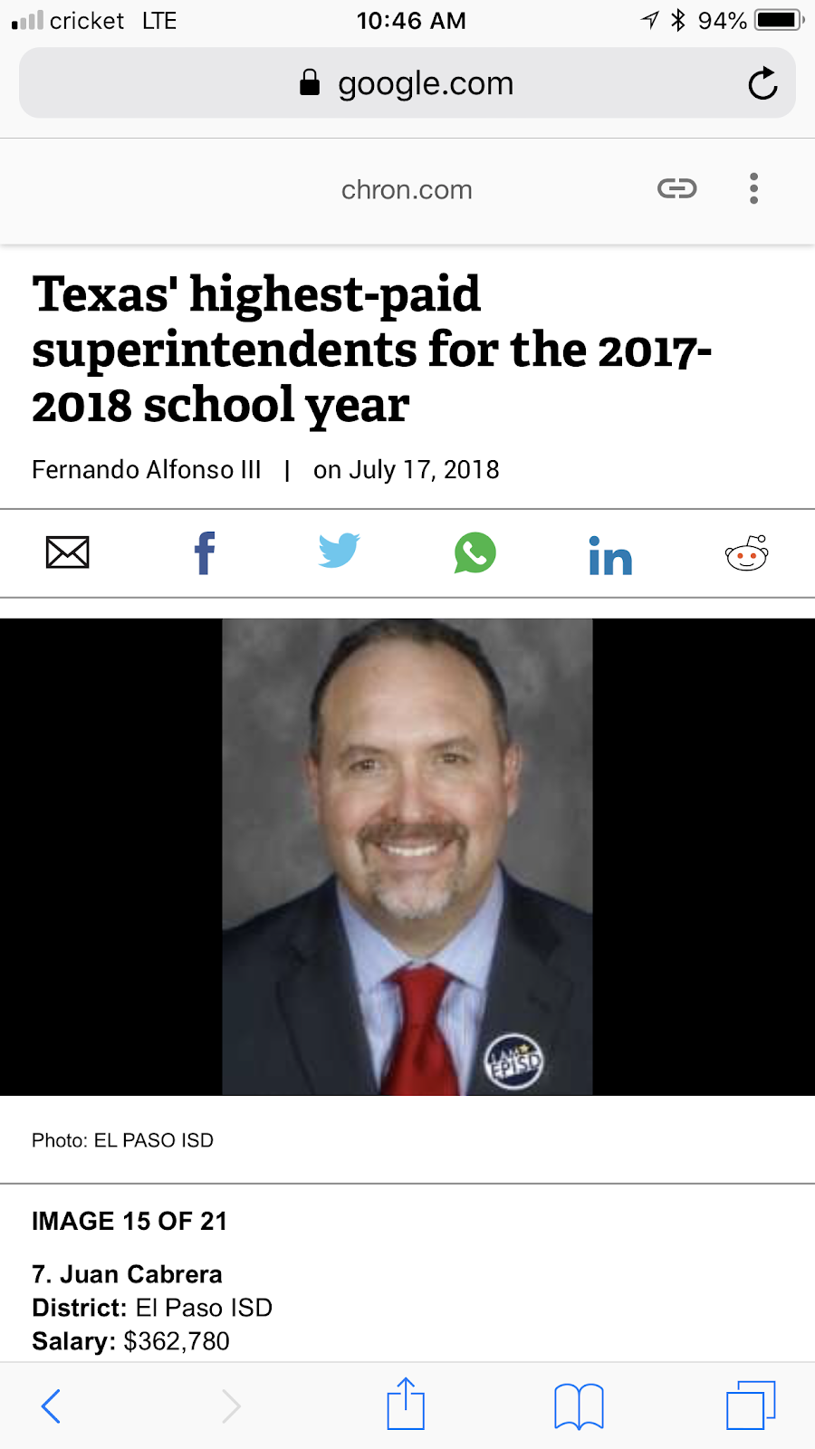 While we rank amongst the least educated communities, EPISD's superintendent is enjoying his spot at the 7th highest paid superintendent in Texas.