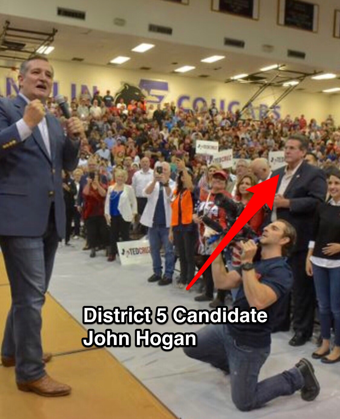 Speaking of a thousand words here is eastside City Rep John Hogan. He's also there at the Cruz rally fanboying for Cruz. That rally is on the opposite side of town than the district he is running in. There are no votes for him to be won there, but he still attended.