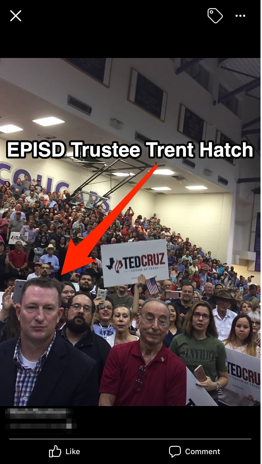 That is EPISD Trustee and Cruz Fanboy Trent Hatch. He's clearly a Republican. He's the guy that wants to close down all the schools in EPISD in poor brown neighborhoods. Like I said, Party matters.