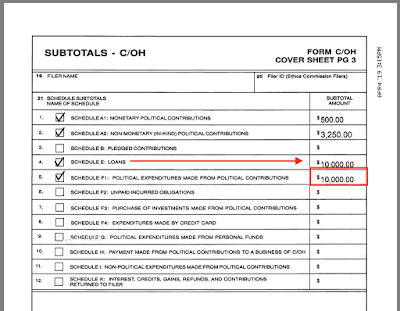 Line 4 is how much she loaned herself for this campaign. Yeah, $10,000 is a lot of money for a school board election. I don't know that I've ever seen that much money spent for a school board election previously, which I guess is somewhat of a news story in and of itself.