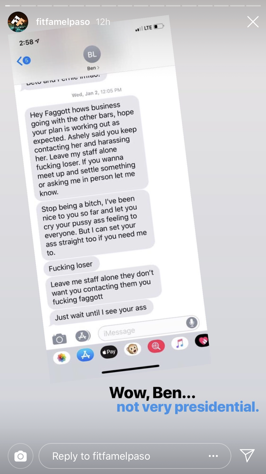 Joke of a presidential candidate Benjamin Leyva, who also happens to be a chiropractor that went to Hanks High School and launched a "presidential" bid recently appears to have made some gay slurs in text messages published on a local fitness-based Instagram account.