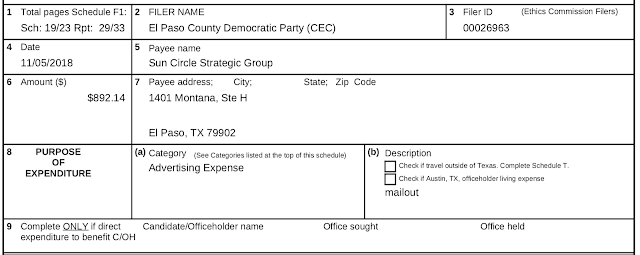 Okay I've heard from several people within the Party about the explanation given regarding money that went from the El Paso County Democratic Party to Eddie Holguin's consulting firm under Iliana Holguin's watch, which was around $9,000. Click here if you missed that post.
