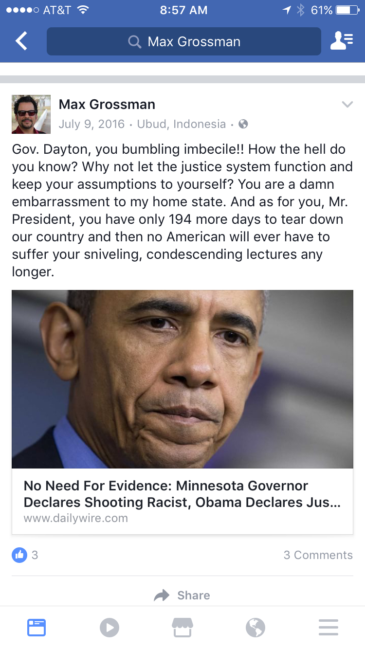 The guy in the middle who is a grown man that still likes to play dress up and in this picture is cosplaying as Inspector Gadget is Max Grossman. Big time Democrat hater. I'll get to him in a minute.