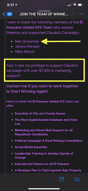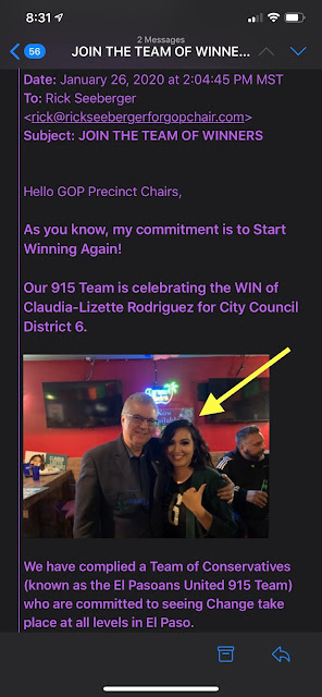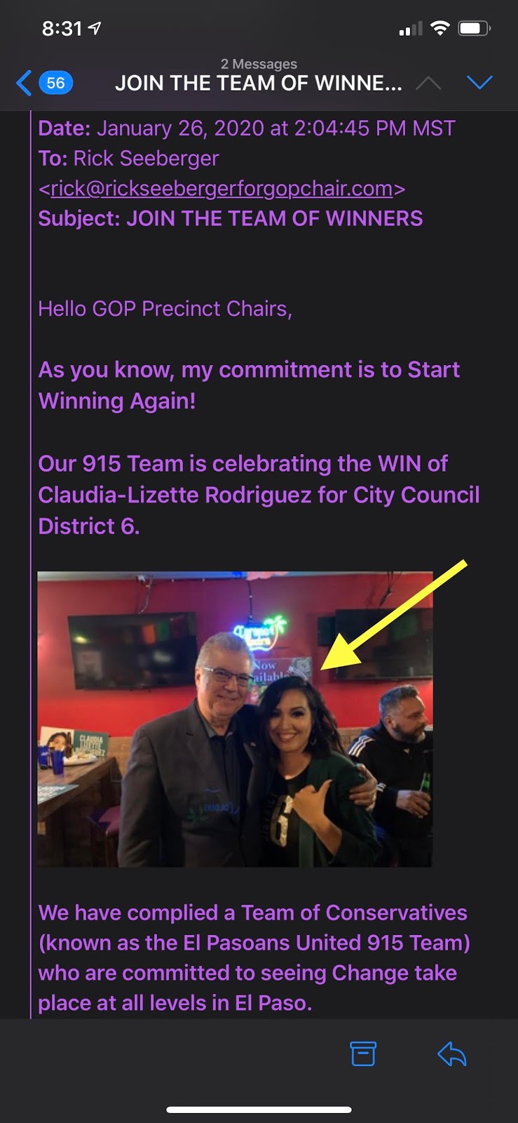 As you can see in this screenshot, Rick Seeberger is the author of the email and he's boasting about the victory of Bizarro Claudia. If you scroll down a little further you will also see him mention Lily Limón extremist Republican buddy Max Grossman, the Dandy.