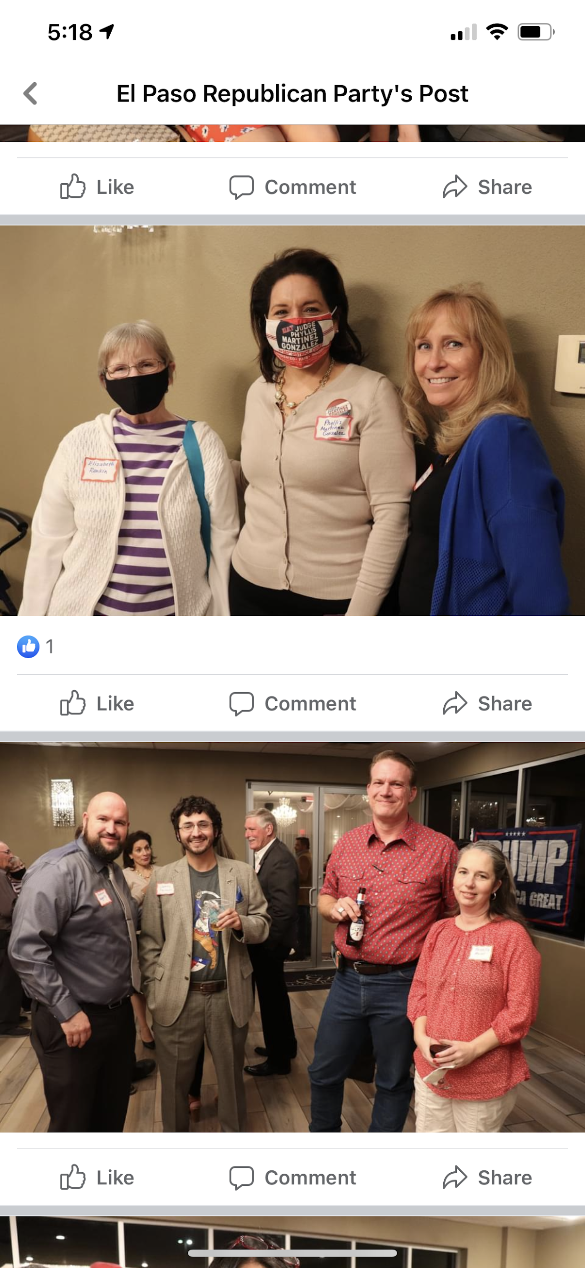 And then two days later the El Paso Republican Party held another in-person Trump - virus spreader event. They called it a fundraiser, but you get my drift.
