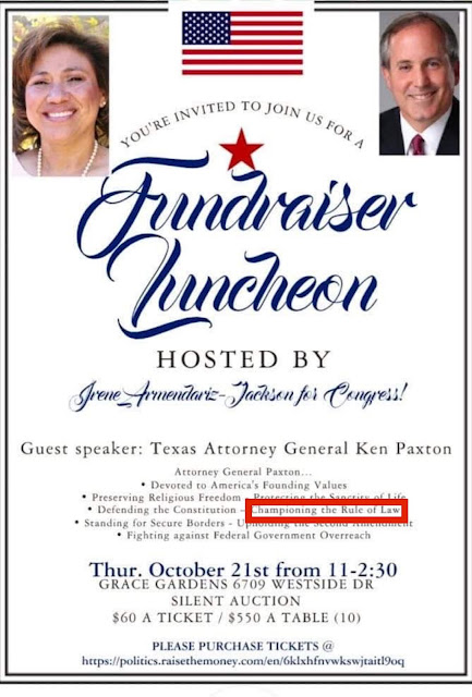Irene Armendariz Jackson appears to be doing a good job of causing division in her own party. Here's another dose of Republican hypocrisy as it relates to the Rule of Law talking point she apparently loves to talk about.